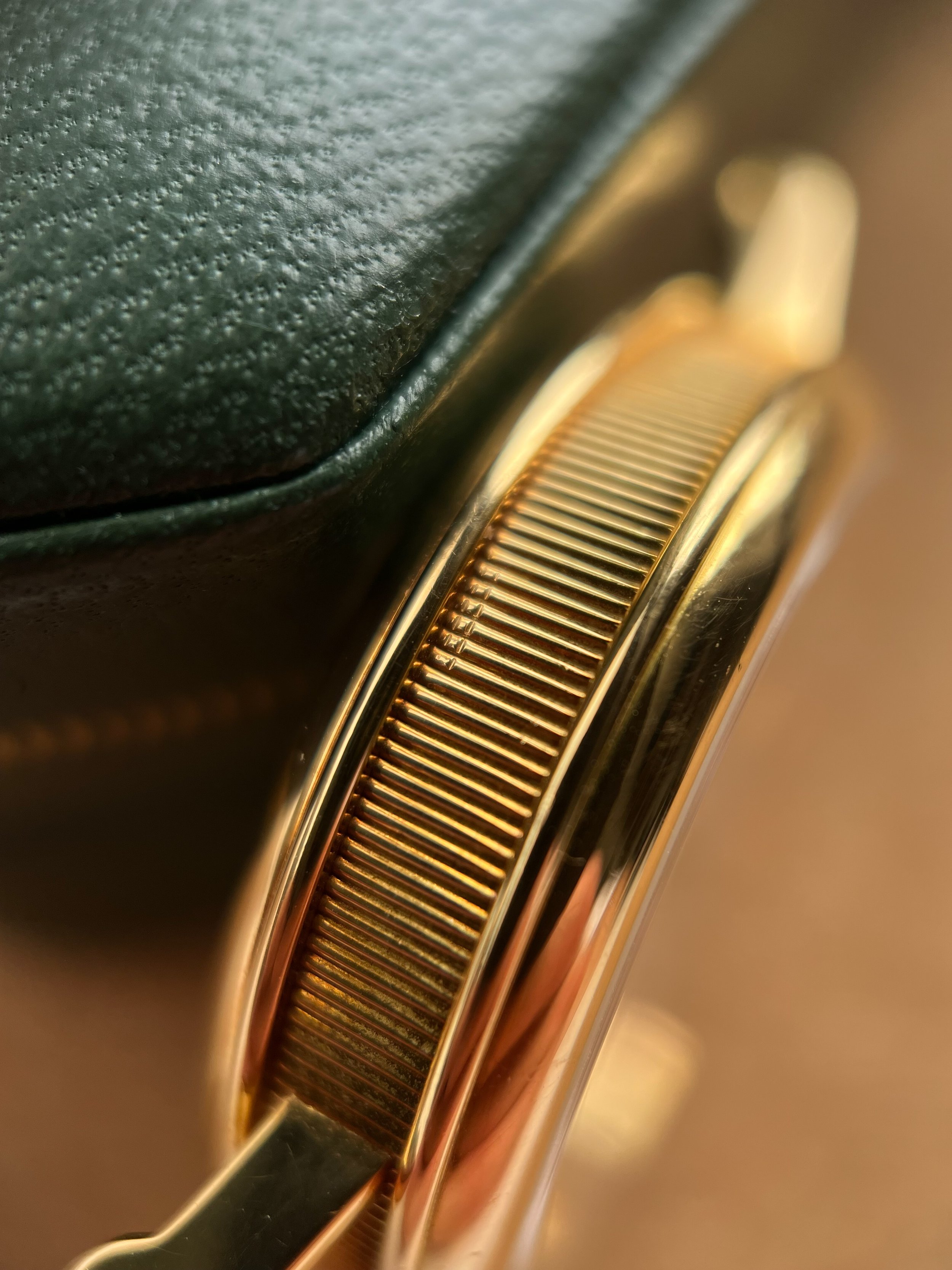 What you should know — Light wear on the case from use. Dial has a couple of minor blemishes, likely from previous servicing. Scratch on case side.