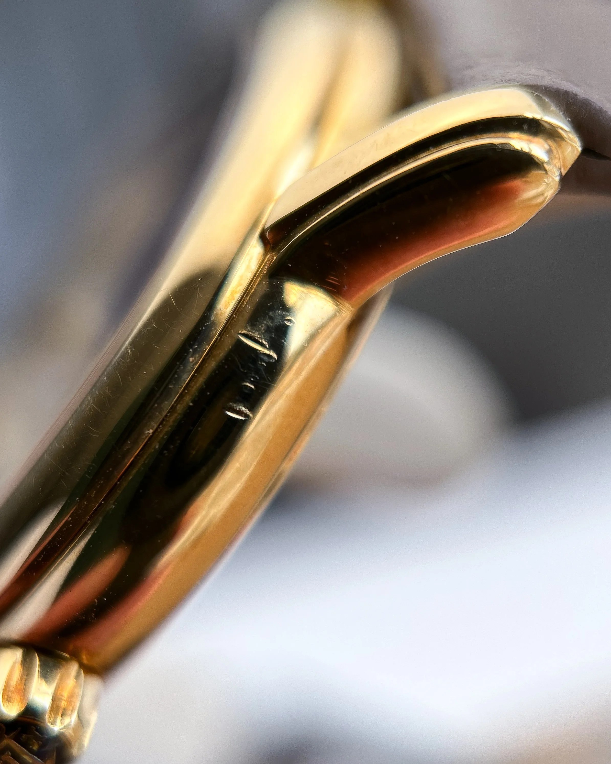 What you should know — There are a couple of deeper scratches on the case side around the 2 o’clock position (see the macro shot). They are visible with the eye also but much less dramatic than the loupe makes out BUT needs pointing out.