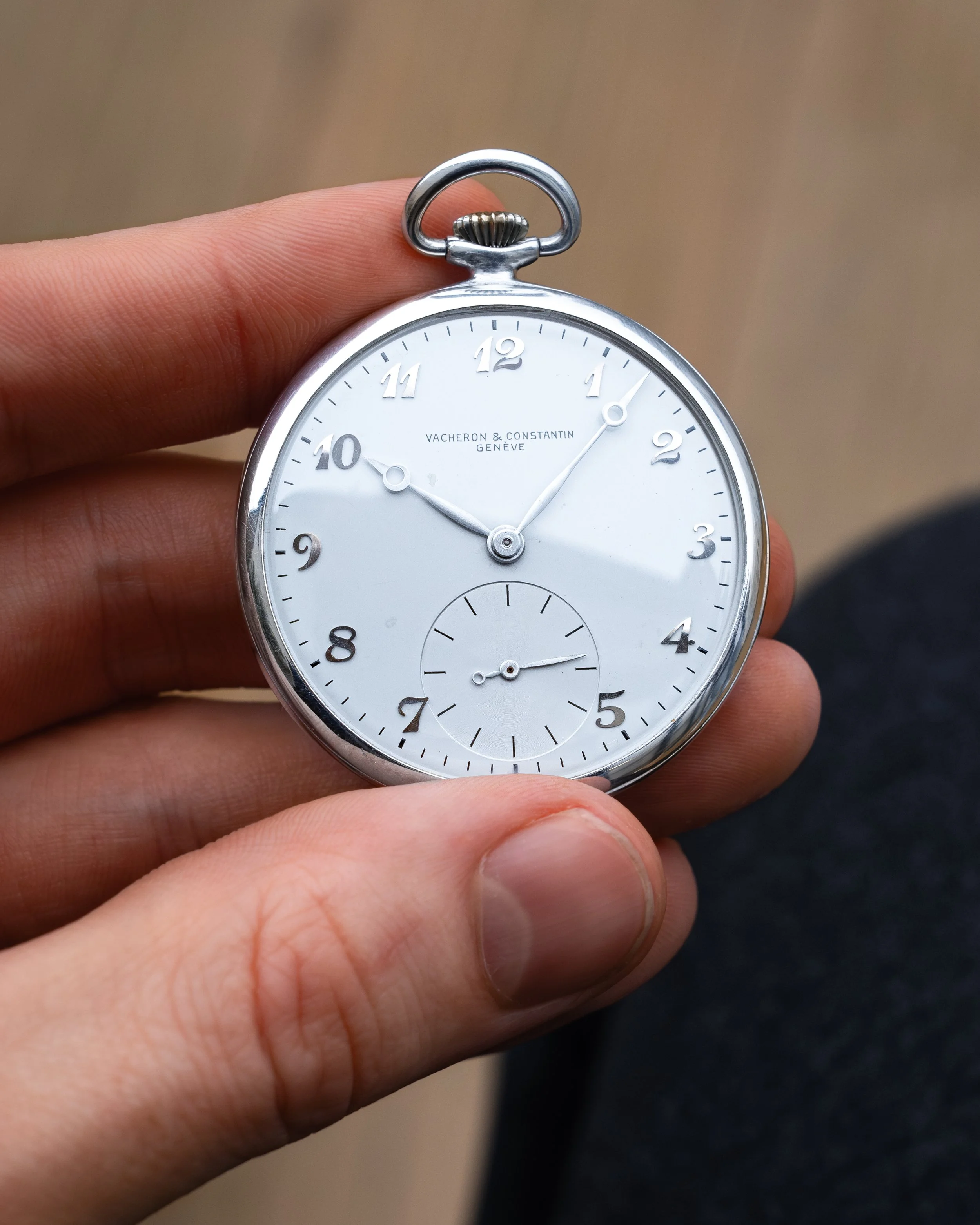 A wonderfully quirky and playful addition to our curation, this Vacheron Constantin pocket watch is crafted almost entirely from aluminium, weighing in at just 20 grams on the scales. Pieces like this were typically presented as long-service awards from the late 1940s through to the early 1960s, most often to those in mining or metalworking industries, usually accompanied by engraved casebacks reflecting their service.