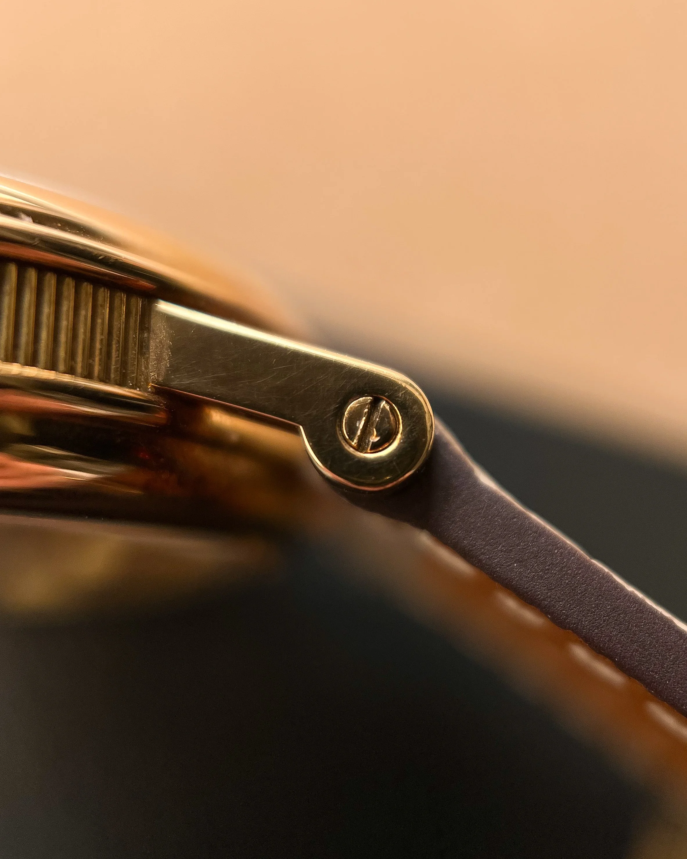 What I love — This variant is over the top, elaborate and extremely ‘flashy’ on the wrist and honestly I love it for it. This is an early and heavily skeletonized variant with intricate hand engraving throughout. The case is extremely sharp, all case engravings crisp and deep. The lugs are thick and some patina developing. The dial is in perfect condition and original unsigned crown and pin buckle are still present.