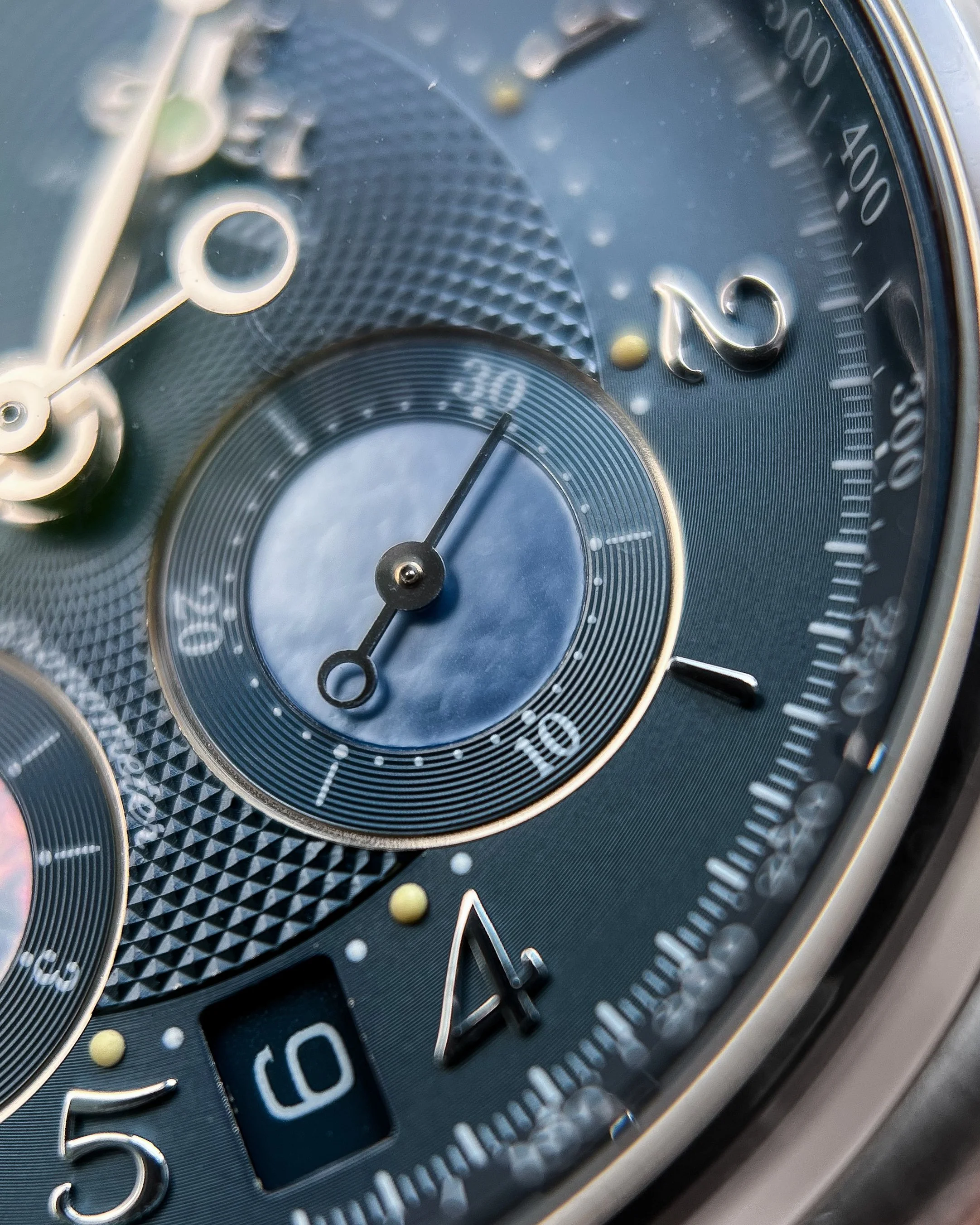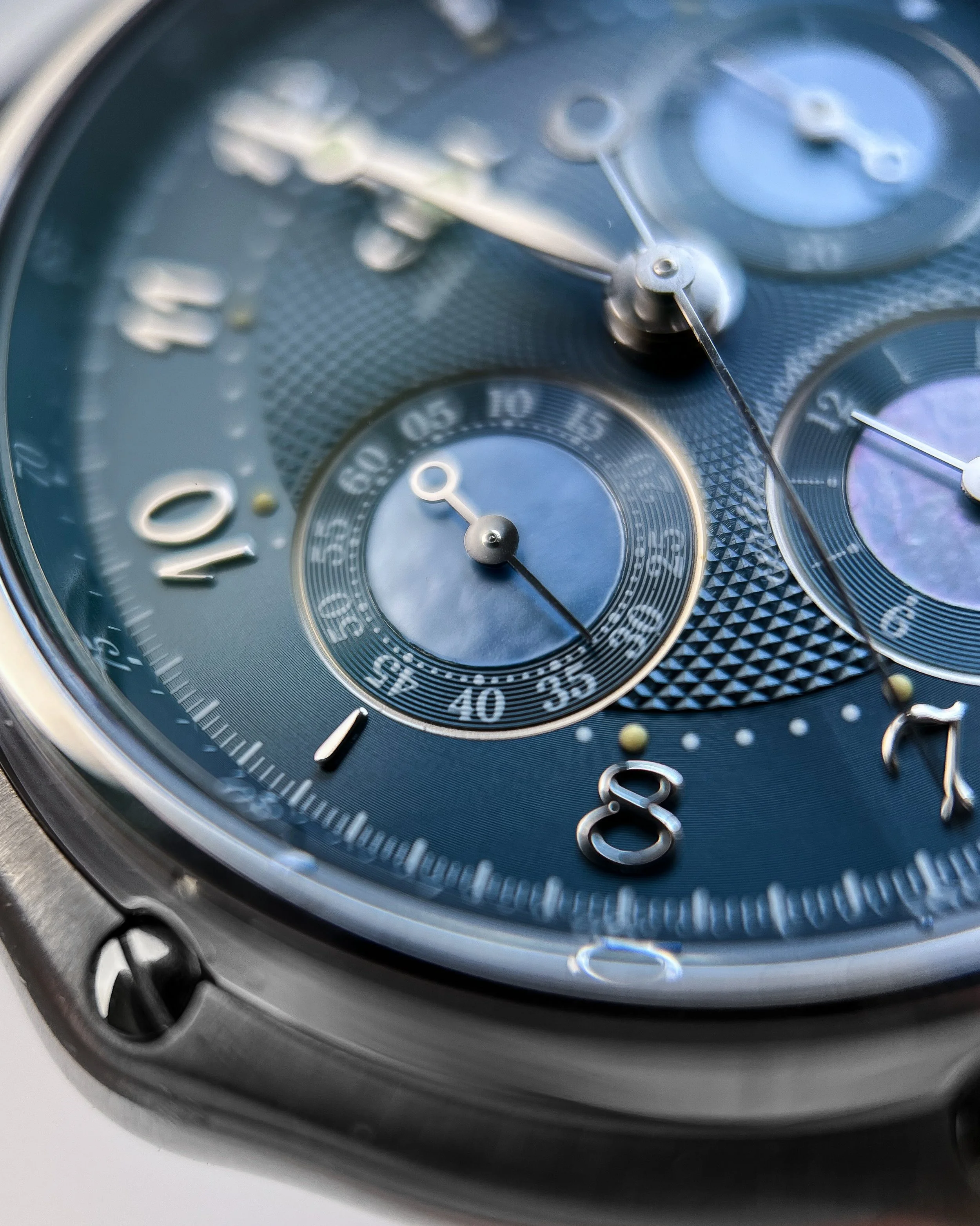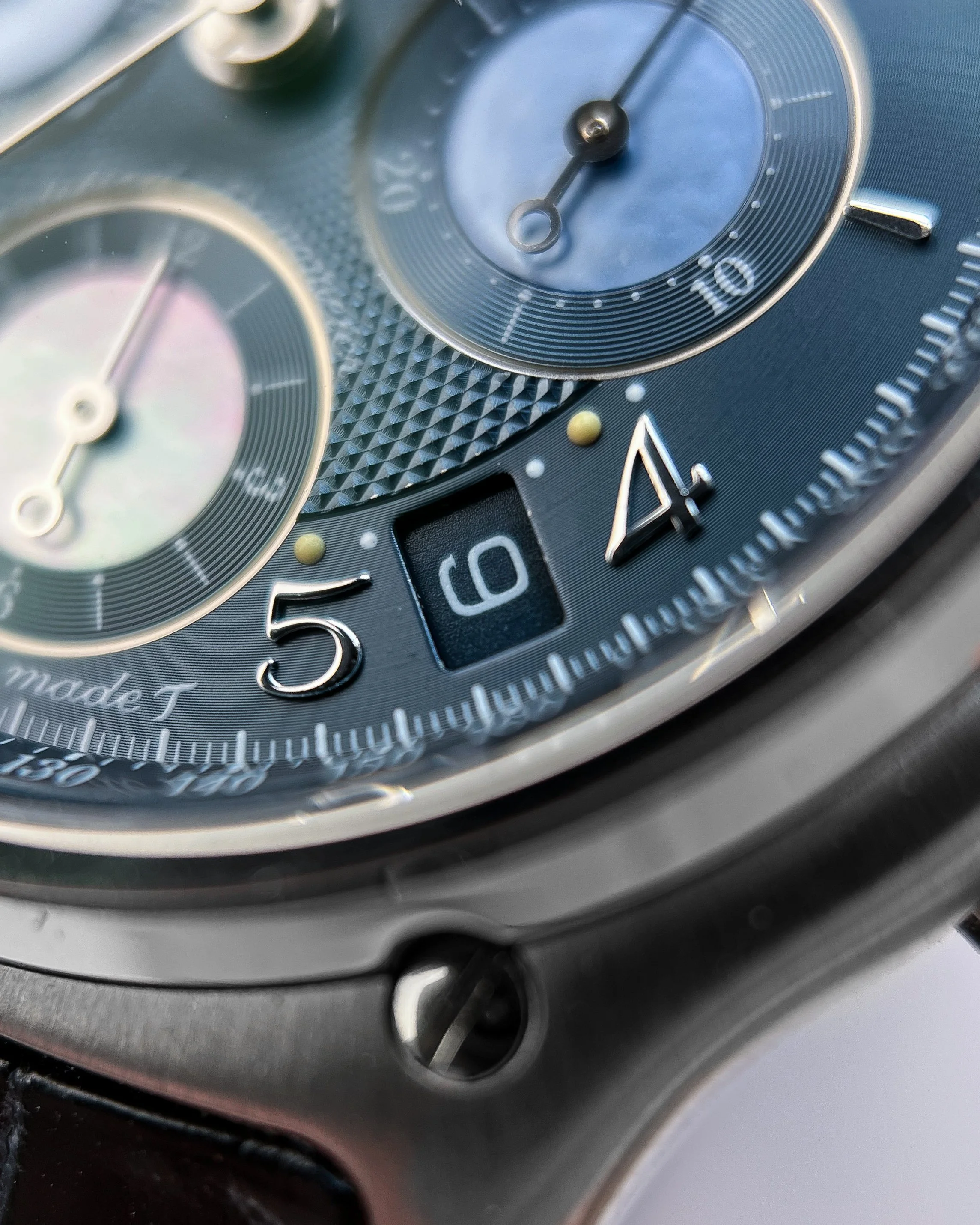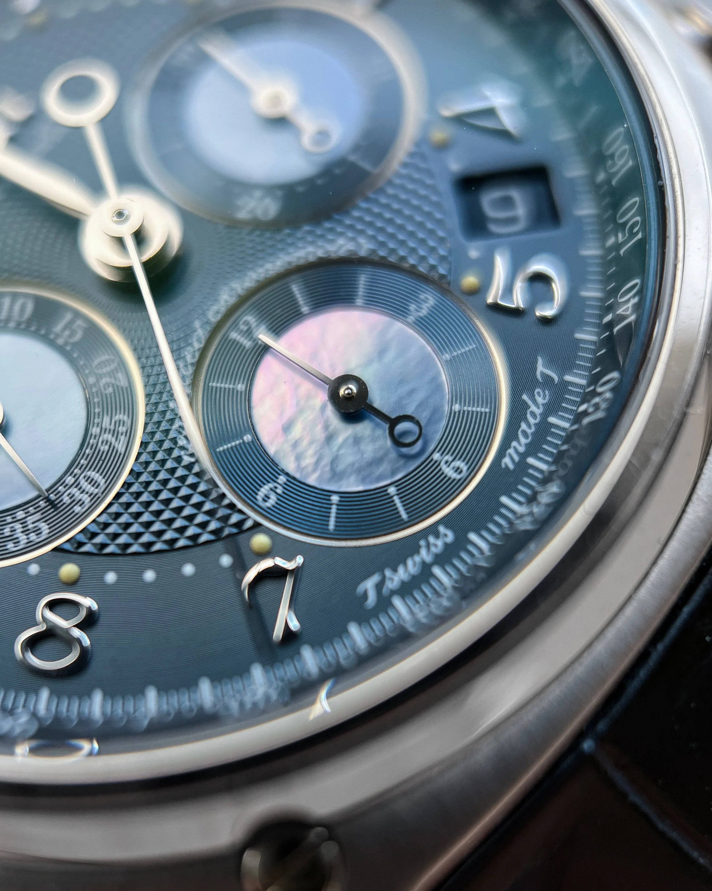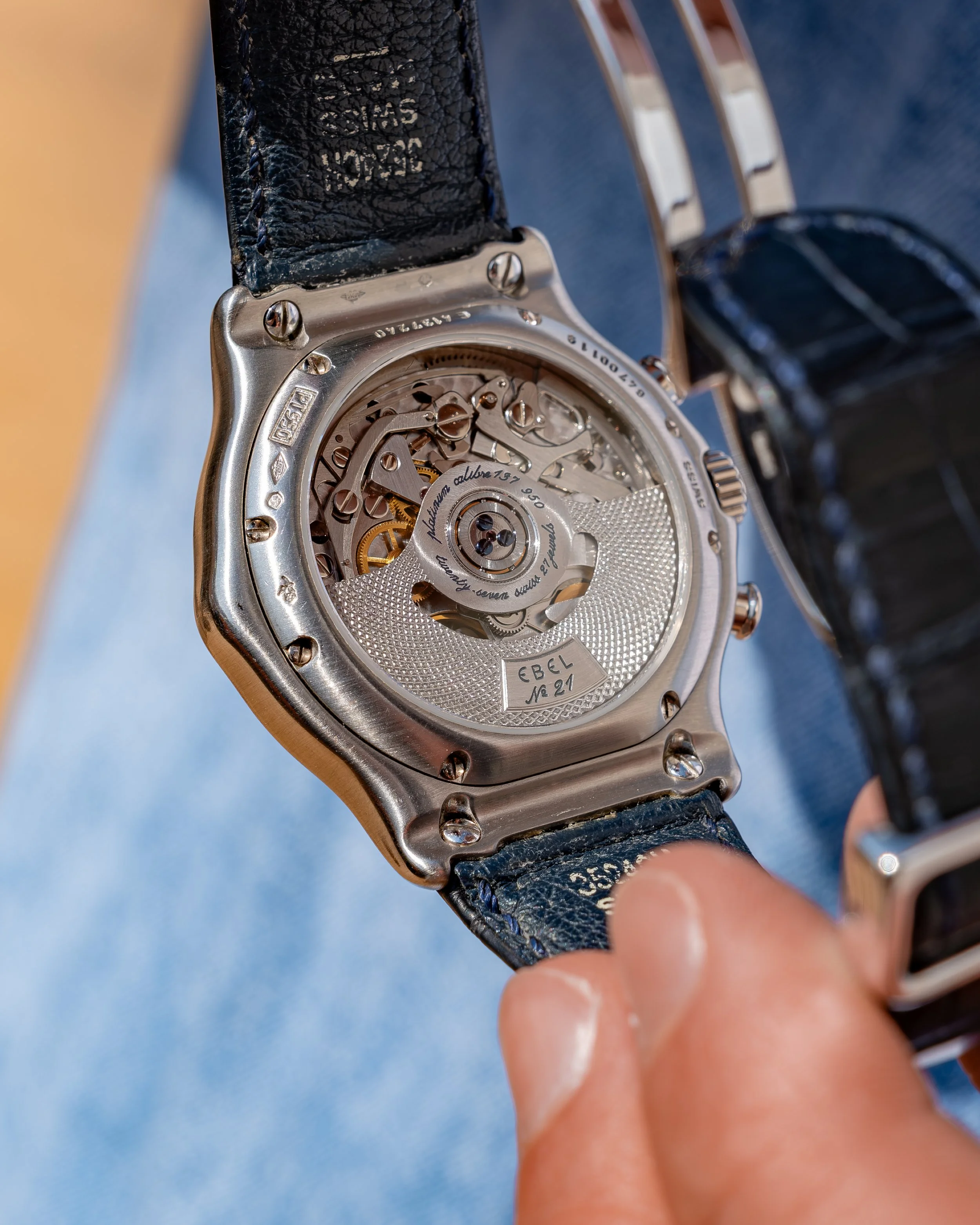 What I love — The dial of this watch catches me every time, the guilloche x MOP combo is just mega and the overall condition of the watch is near perfect. The case is sharp with all engravings crisp. The display back is a highlight and shows the numbered rotor, no. 21 (of 99). This was Ebel most prestigious chronograph of the time having taken production in house after Rolexes uptake of the El Primero movement.