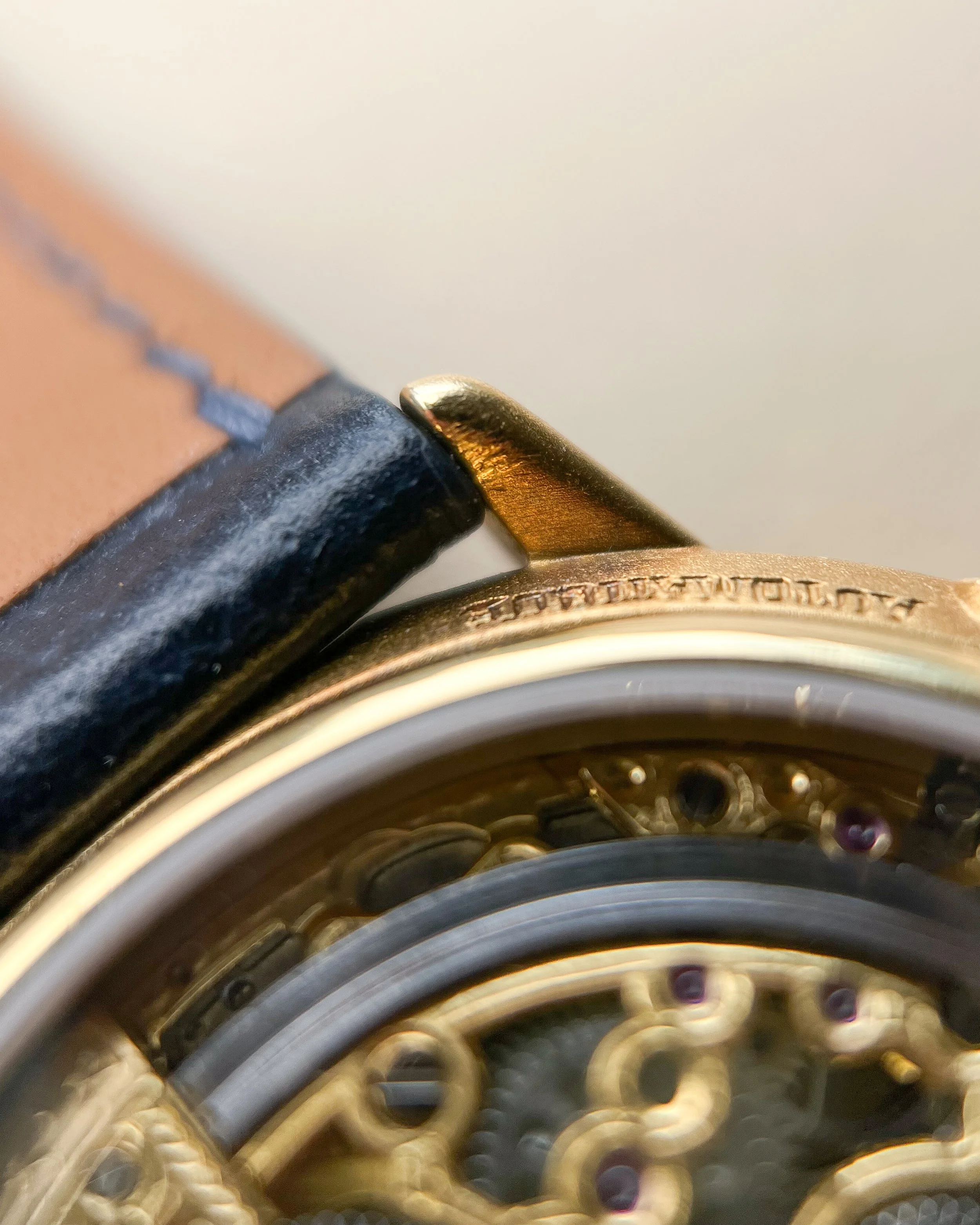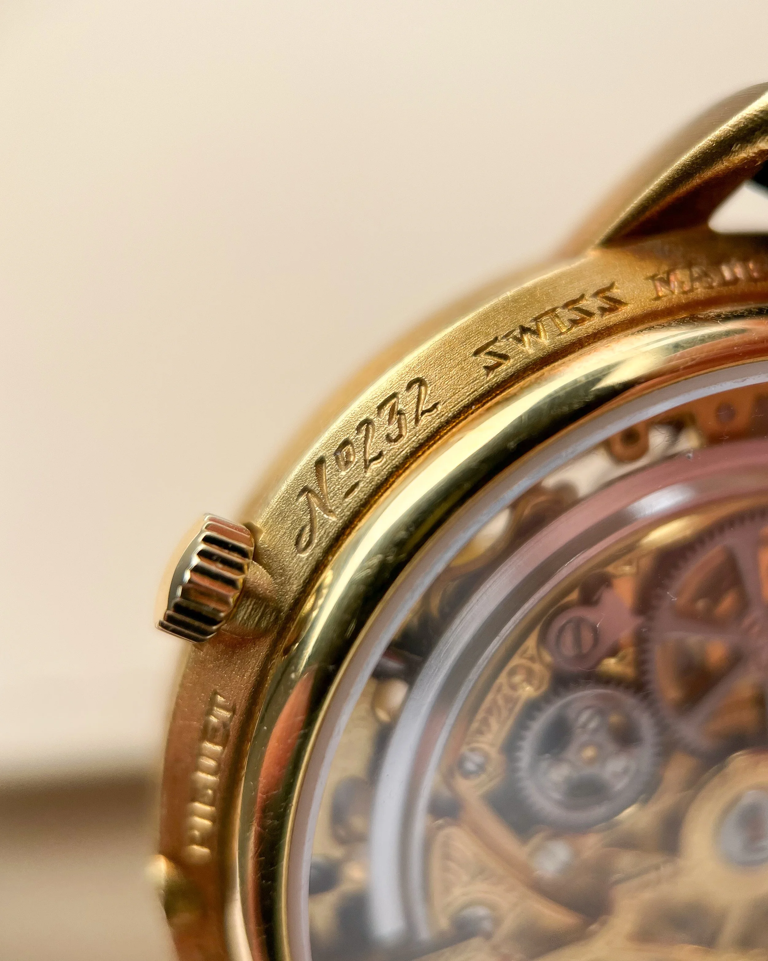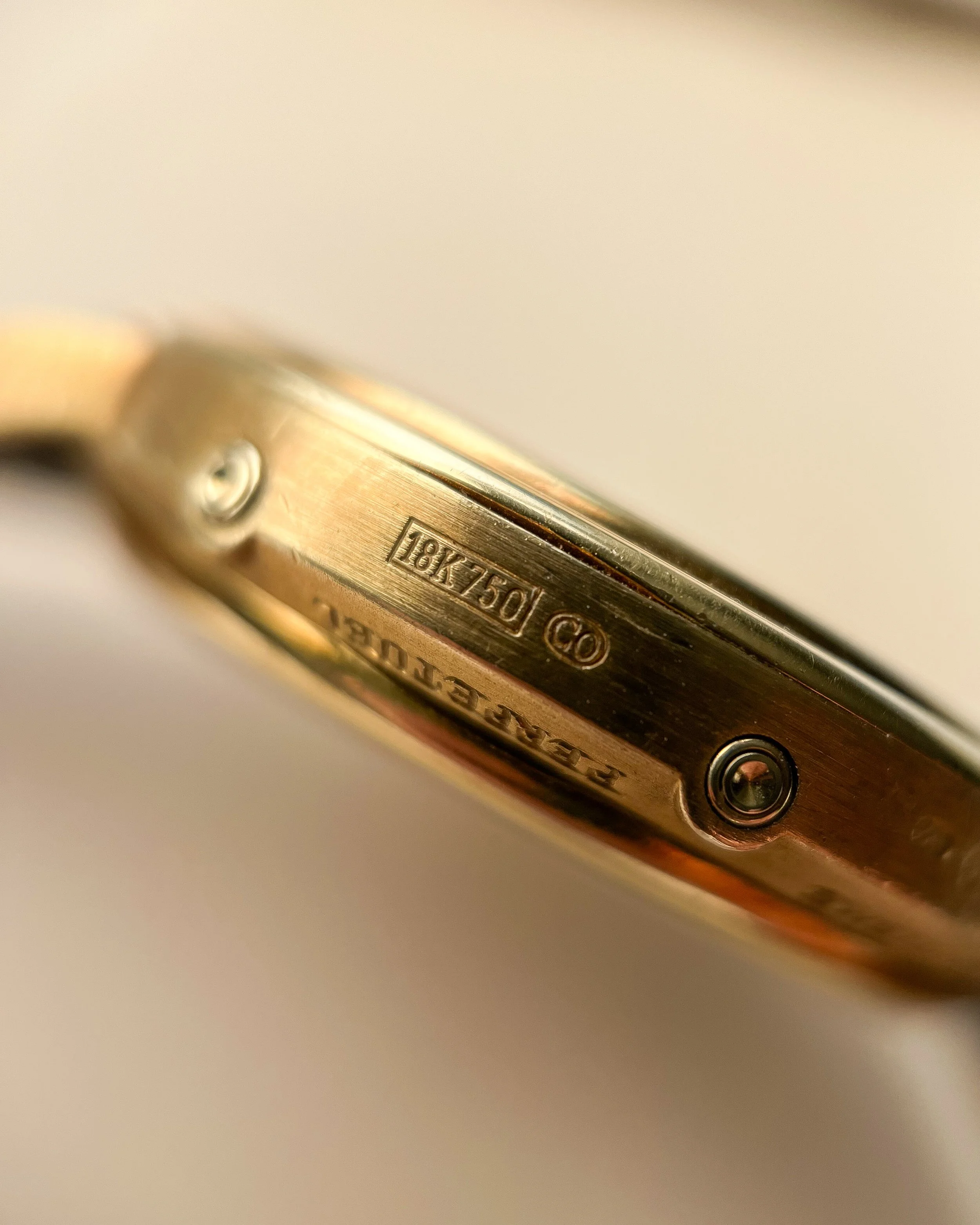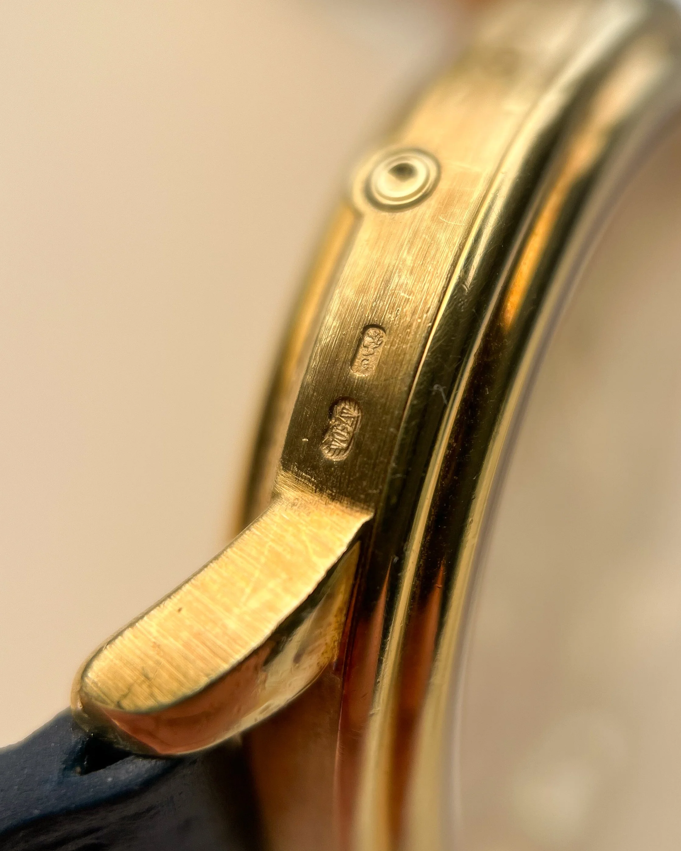 What I love — Exceptional brushed and polished finish platinum case with display back. The rose gold hand-engraved 2121 is a major draw creating a wonderful high-low with the rather unassuming white sector dial at the front. The case is preserved perfectly with engravings deep and no.42 on the back, limited run. The dial is beautifully simple with EXTRA PLAT at 6. The watch comes with it original platinum buckle.
