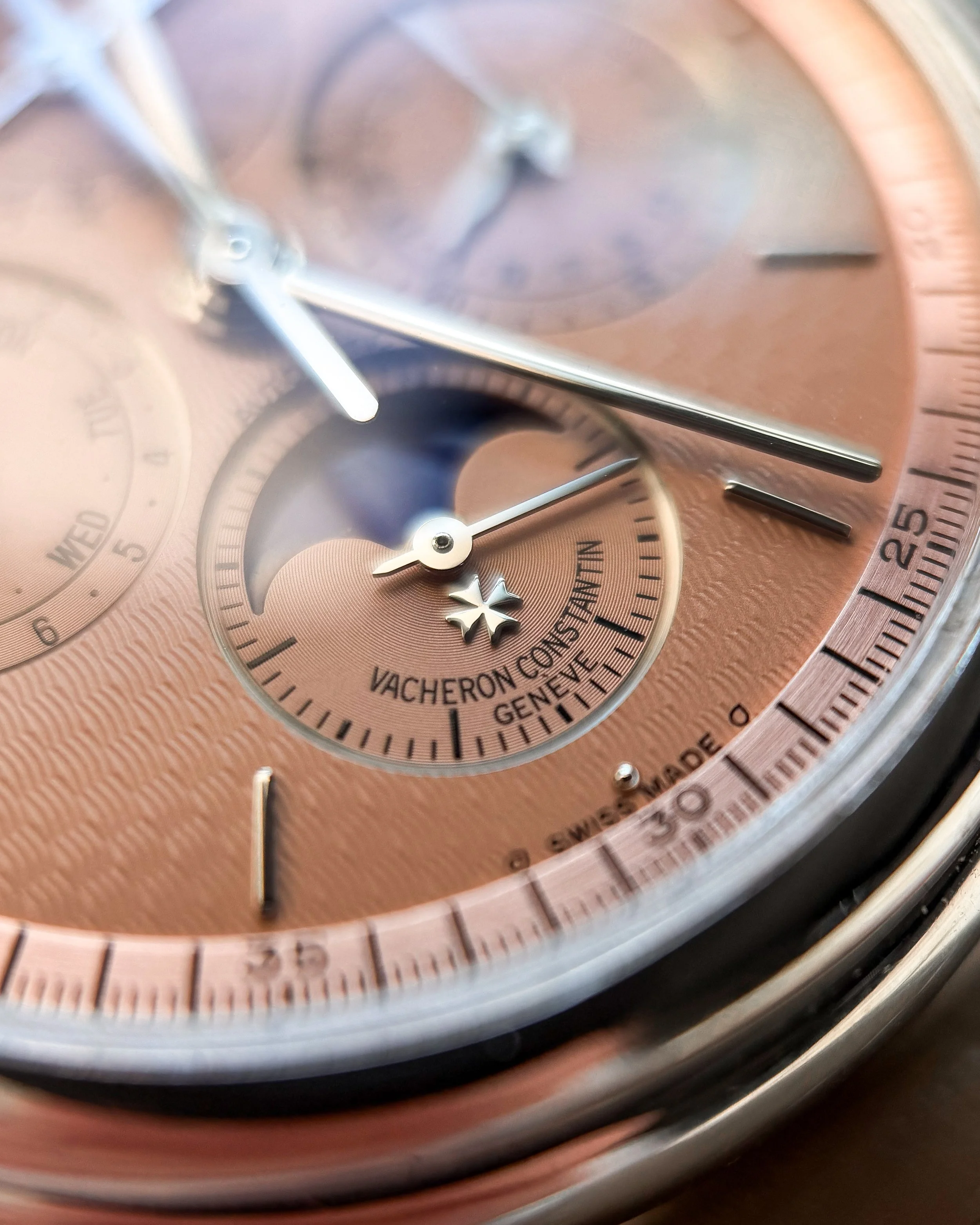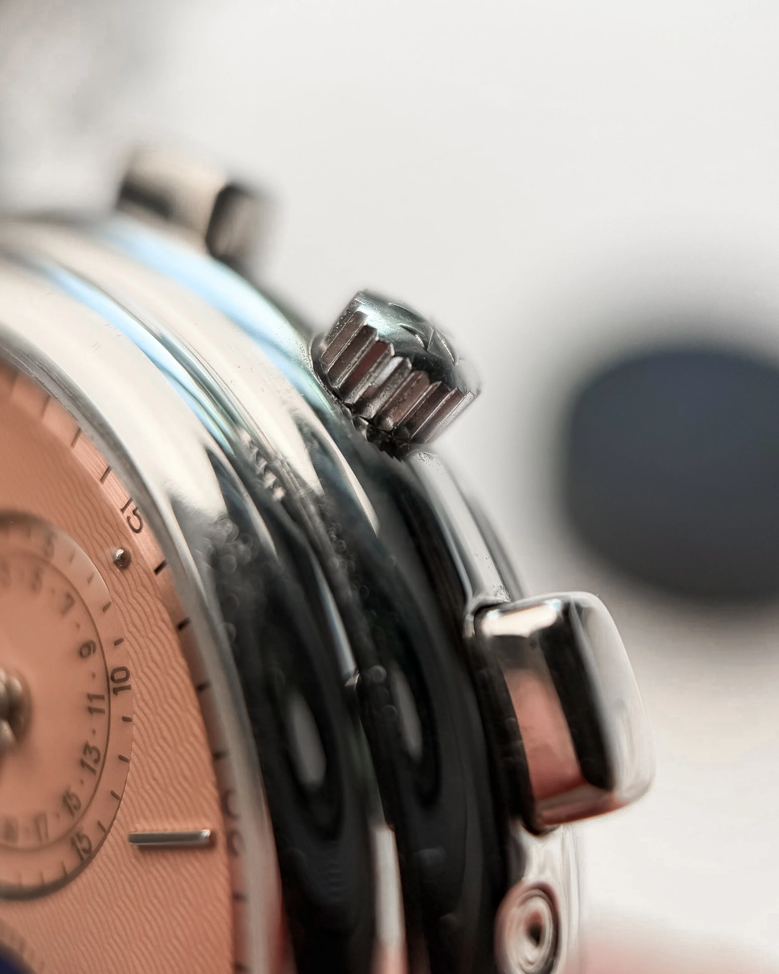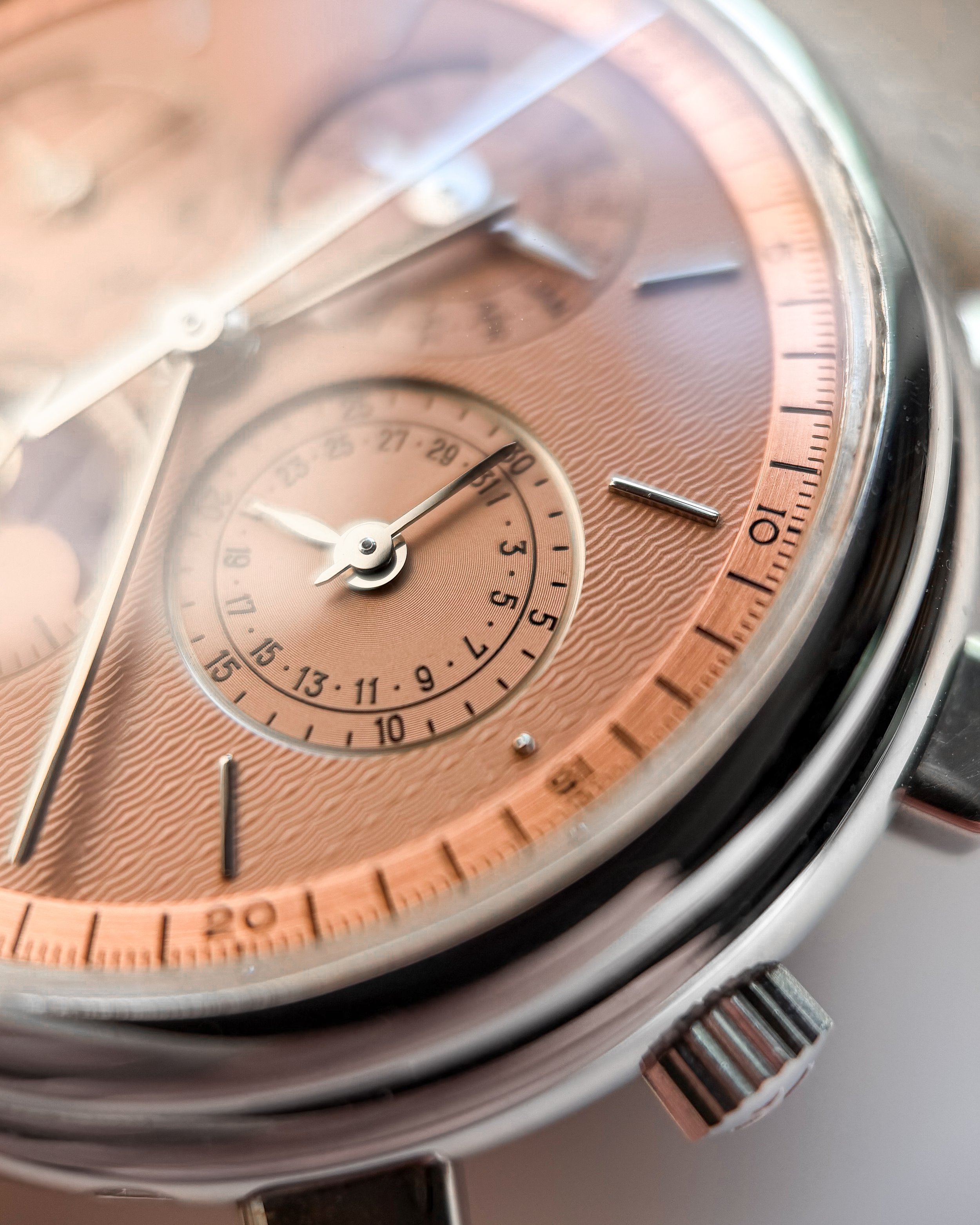 What you should know — The watch runs well, even if the movement isn’t exactly spotless these days but honestly, the real joy here is the exterior. The textures and the way light dances across the engine-turning, that’s what makes this ref. 765 so much fun! The dial shows very light wear for its age.